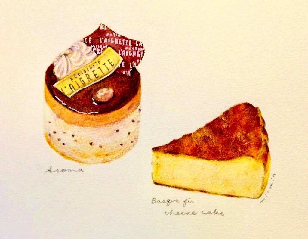 Minmin ٹوئٹر پر 同じく パティスリーレグレットさんの バスク風チーズケーキ 焦げ目のシワは今後の課題 とにかく なめらか濃厚 絶品です 水彩イラスト 水彩色鉛筆イラスト 食べ物イラスト おやつイラスト おやつスケッチ ケーキイラスト T